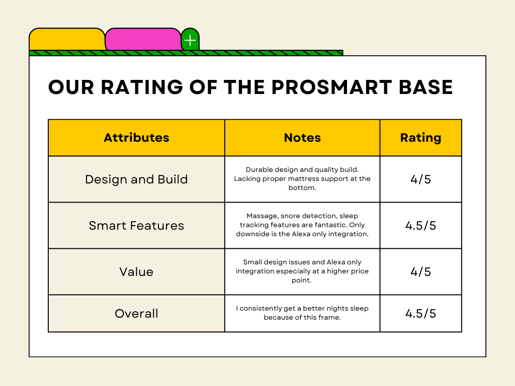 However, there are a few downsides to consider. The ProSmart Base comes with a premium price tag, which might be a barrier for some. The complexity of its features and settings can be overwhelming for those who prefer simpler solutions. Compatibility could be an issue as well; it may not work with all mattress types.